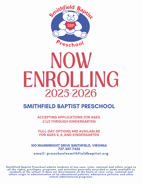 Email: Preschool@smithfieldbaptist.org